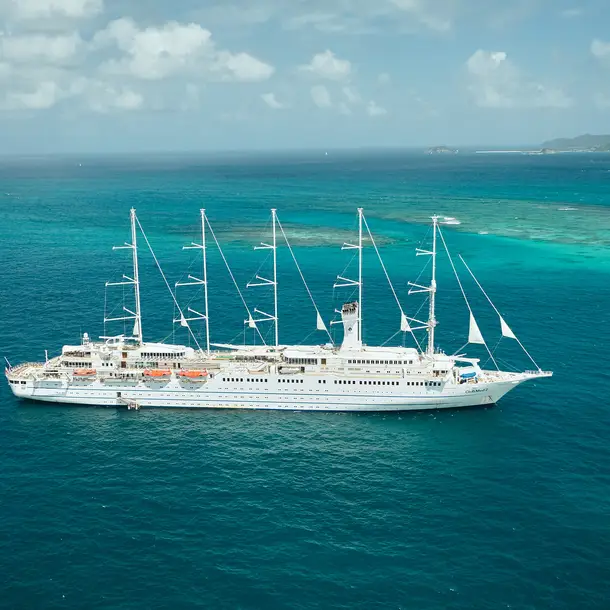 Complètement transformé en 2023, cet exceptionnel voilier de 187m de long, avec ses 2 700 m² de pont en teck, ses bastingages d’acajou et ses 164 cabines luxueuses, réinvente l'art du voyage en mer.