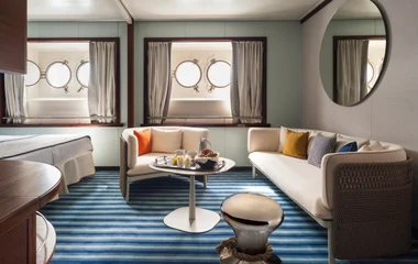 Des Suites spacieuses et raffinées, ouvertes sur la mer grâce à 4 hublots, vous proposent le plus haut niveau de confort yacht cinq-mâts