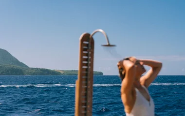 Club Med 2, arbore fièrement ses sept voiles qui veillent sur près de 2700 m2 de pont en teck de Birmanie. De quoi vous donner envie de faire le tour du bateau, pieds nus, pour profiter d’un panorama à 360 degrés sur la mer.