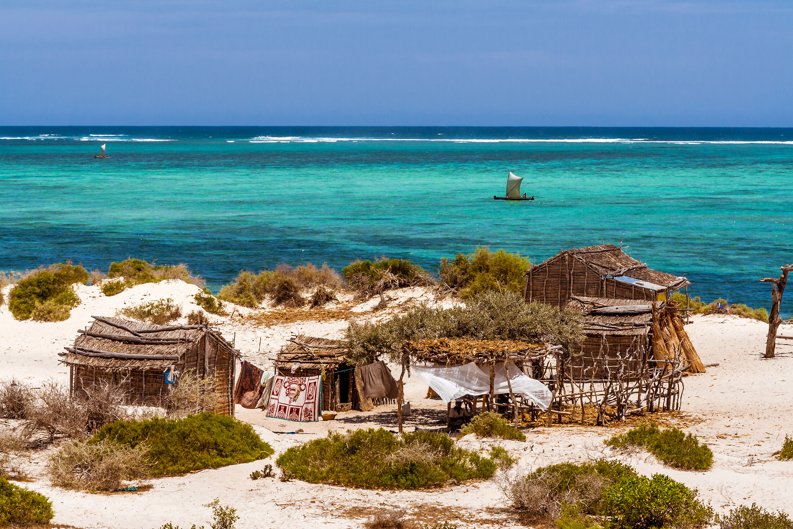Flânez sur ses plages paradisiaques où l’eau se drape de teintes vertes et bleues turquoise face au sable immaculé et palmiers penchés sur la mer. Au loin, vous pourrez admirer la succession d’îlots recouverts d’une végétation tropicale où champ de girofles, vanilles, orchidées et palétuviers forment un tableau saisissant à Sainte-Marie.Bon à savoir sur le climat de Madagascar : de janvier à mars, la saison des cyclones touche quelques zones du pays. Le climat à Madagascar est ainsi moins avantageux sur la côte Est et les pointes Nord et Sud à cette période car elles peuvent être affectées (même si elles ne sont pas touchées chaque année). En revanche en cette saison, la côte Ouest jouit d’un climat à Madagascar très ensoleillé.