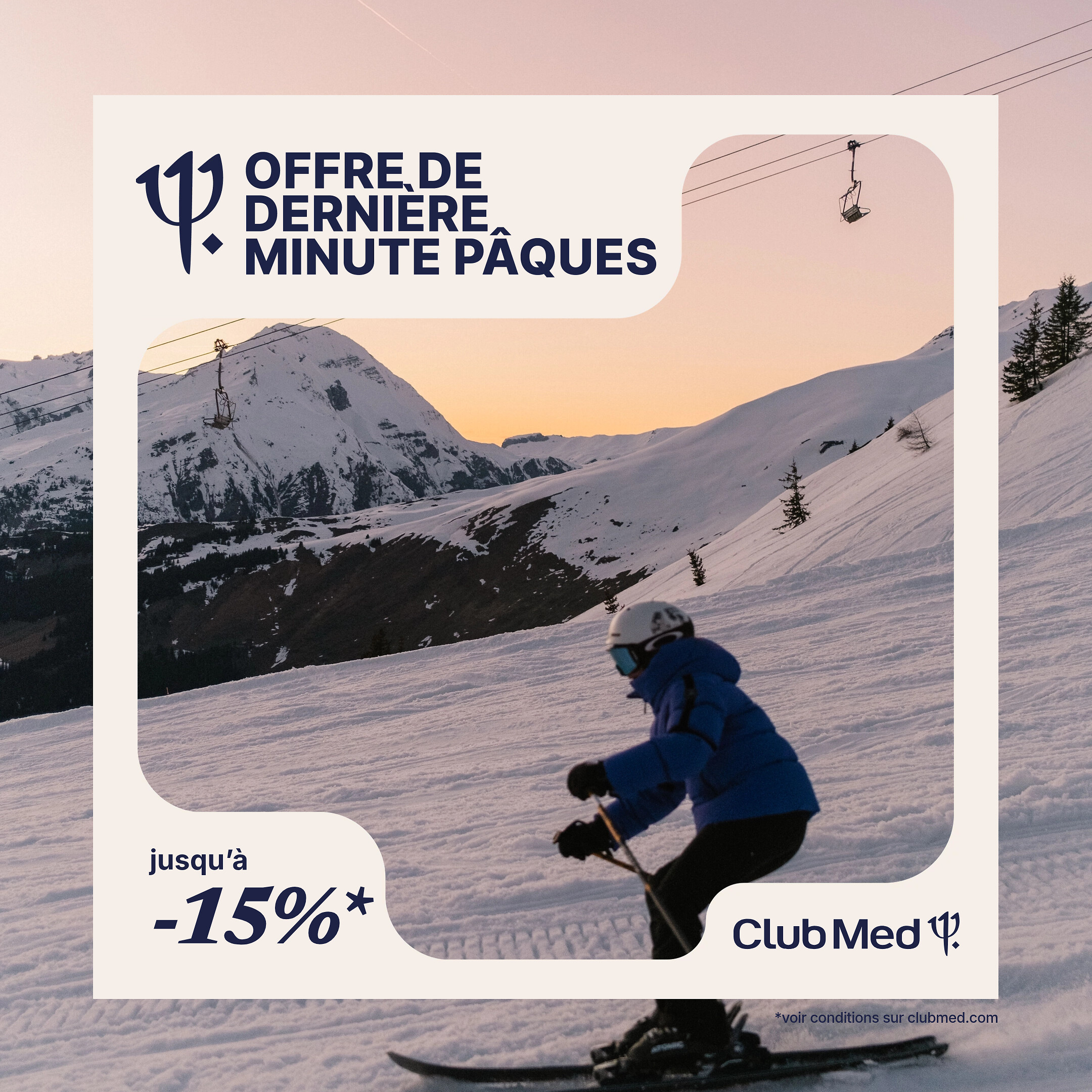 ✔ Jusqu’à -15%* sur vos vacances sur une sélection de dates et resorts entre le 04/04/26 et le 09/05/26